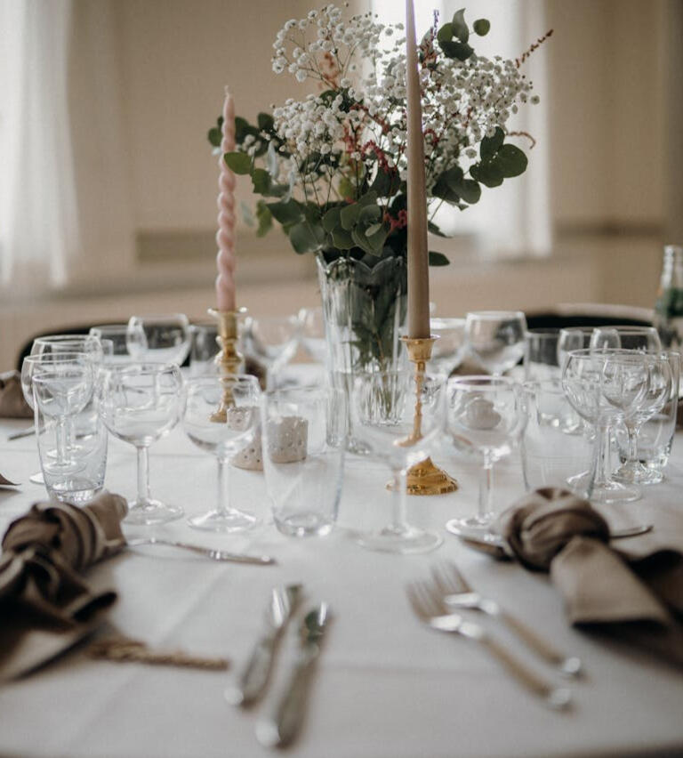 The rustic elegant wedding theme pairs quintessential rustic details—like burlap, wooden cross-back chairs, and greenery—with slightly more traditional decorative elements, such as chandeliers, candelabras, and calligraphy signage.